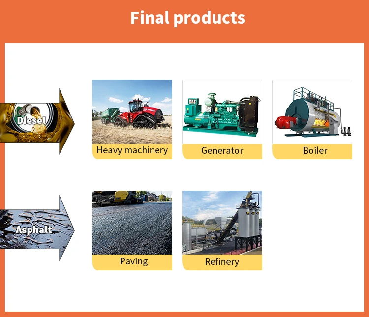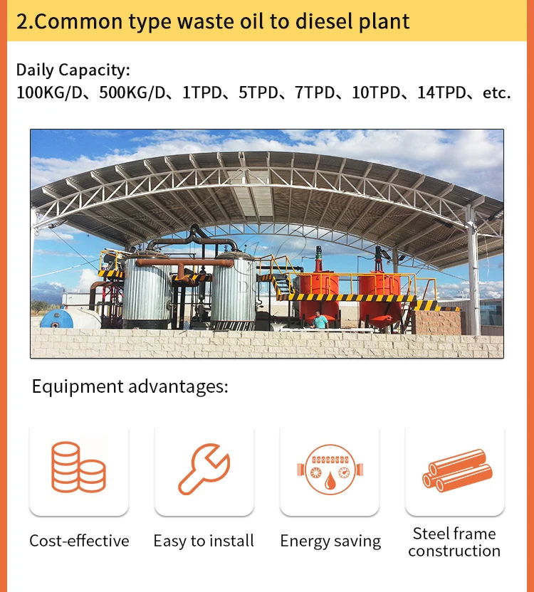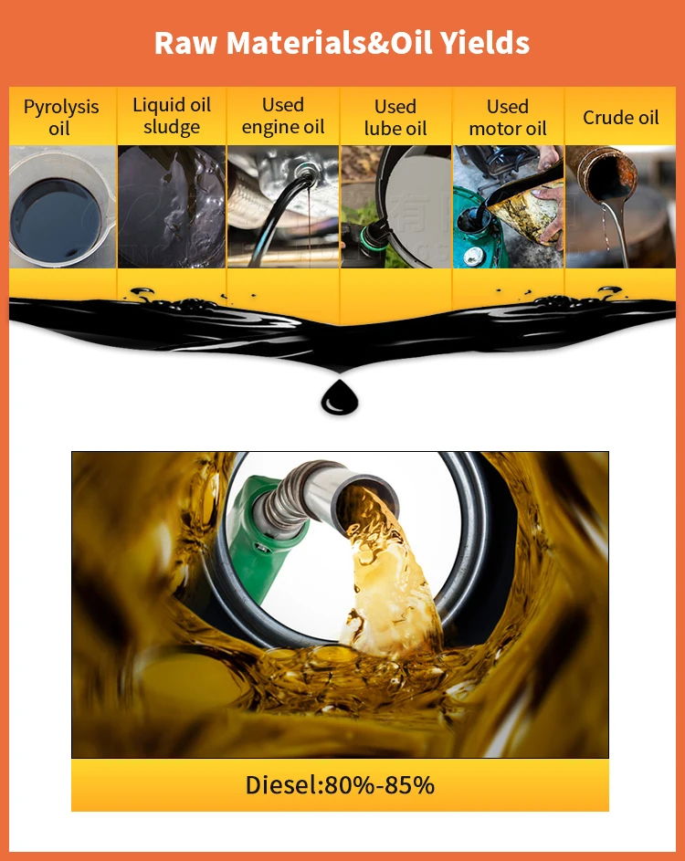 DOING Distillation Plant is specifically designed to refine a variety of materials including pyrolysis oil made from Plastics, Rubbers, Waste Transformer Oils, Engine/Gear Oils, etc. Our waste oil distillation plants have different capacities such as 1/5/10/12/14+tpd and can also be customized according to your processing volume. The distillation reactor adopts vertical design, which is easy for slagging. And for the distillation technology, we have both liquid and solid catalyst to choose from. Our machine also features a mode of water cooling and a total cooling area, ensuring optimal performance. Meanwhile, the combustible gas generated during the distillation process can be recovered and heated in the reactor, saving external fuel.